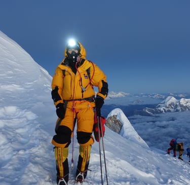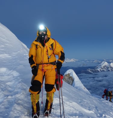 She has worked at the heart of international climate negotiations and climbed multiple 8,000-metre peaks, including Mount Everest, while spending time in the Himalayan mountains witnessing how climate change is reshaping lives, cultures, and landscapes.
