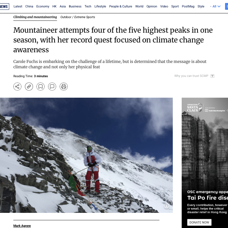 She will climb the four of the five highest peaks on earth in spring 2021, and will use her platform to raise awareness about climate change, install solar panels, make biofuel available to local villages – and collect data for climate change experts.